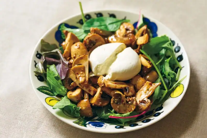マッシュルームとブッラータのサラダ