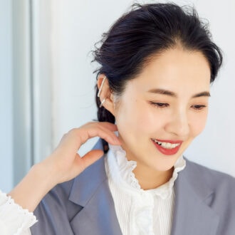 「パールが繊細だから、頬の高い部分にひとはけするだけで、ゆるんで平面的になった頬の丸みがよみがえり、ギュンとリフトアップ」