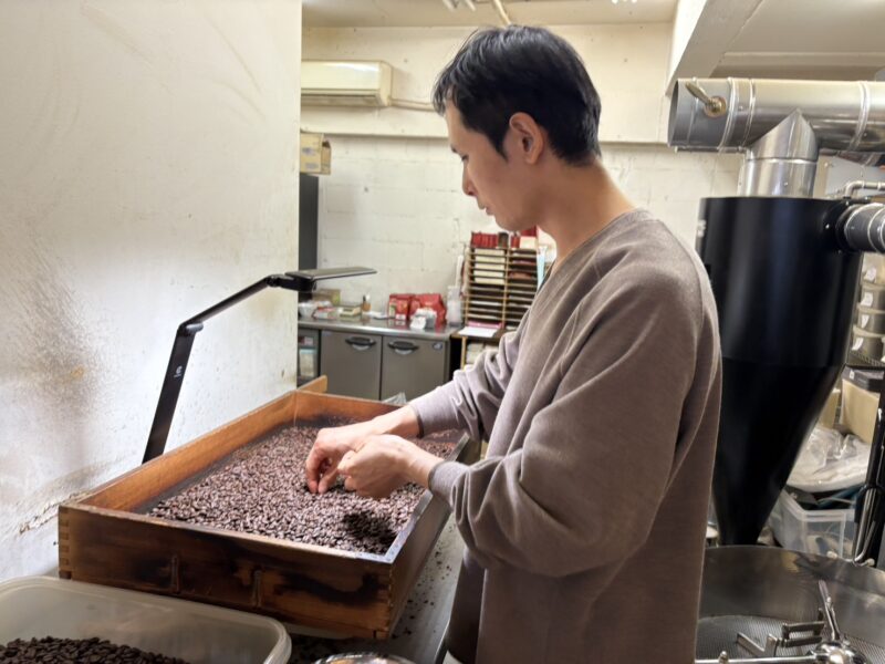 農作物であるコーヒー豆には、果実や野菜と同じく、虫食いや未熟な“欠点”がある個体が存在。焙煎後に、大沢さんの目利きで「欠点豆」を取り除いていきます。この工程を省いてしまうと、えぐみが出てしまったり独特な苦い味になってしまうのです。