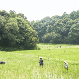 地元のNPO法人が運営する「SOSA PROJECT “My 田んぼ”」の活動にも参加しています。匝瑳市内の里山に広がる田んぼに、東京など関東近郊からさまざまな地域の人が集まり、一緒に手作業で稲作を体験。