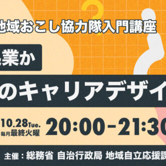 「地域おこし協力隊」に関心のある方を対象に、毎月最終火曜日、総務省主催でオンライン講座を開講。制度の解説や、特定のテーマを深掘りし、より具体的な検討が可能になる内容です。
