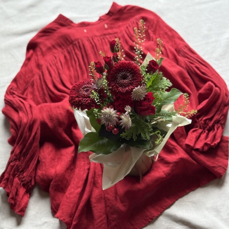 休日の朝、可愛い花束が届きました。親しい友の子どもたちからでした。赤が深くて美しく、この日の気分にぴったりだったのです。わたしは、彼らが幼い日のことを今でも思い返しては愛おしく懐かしんでいるのですが、彼らはふたりでわたしにお花を贈ってくれるほど素敵な大人になっておりました。わたしは嬉しくて、ついうっかり涙がこぼれてしまいます。幸せってこういうのだ、と思う朝でした。