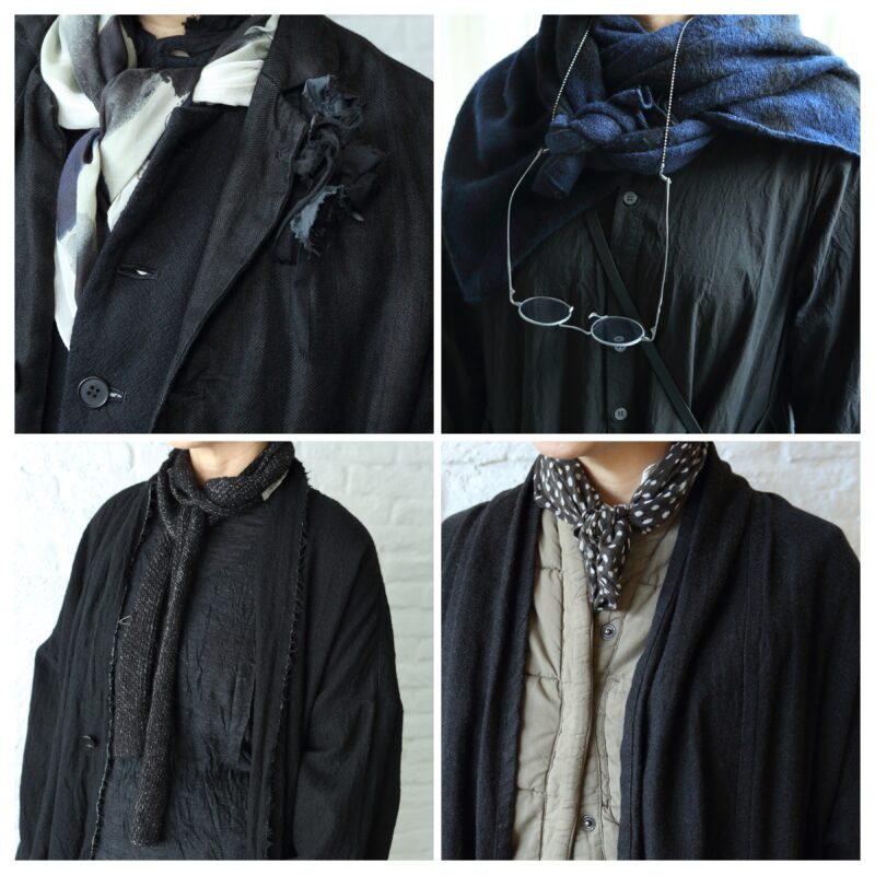 須田さんのファッションアイテムで欠かせないのが、メガネとスカーフ。「メガネは職人が一つひとつ手作業でつくるリガーズのものを愛用しています。メガネケースもポシェット代わりに使います」と須田さん。スカーフはインドのガーゼ素材やシルクなど、肌ざわりのいいものを選び、モノトーンコーデのアクセントにします。