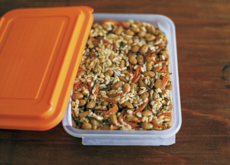1. 米麹はもんでパラパラにしておく。納豆はパックから取り出し混ぜておく。糸昆布は水でもどしておく。にんじんは千切りにする。