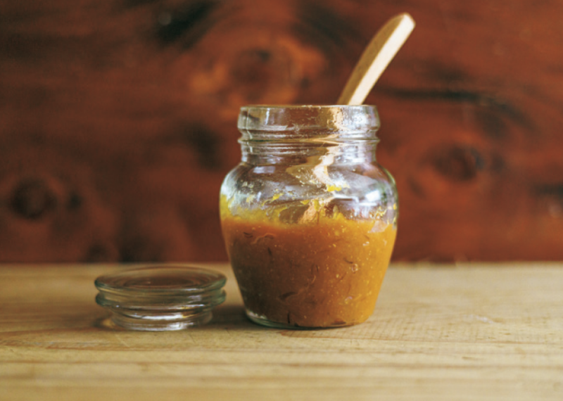 2. みりんを入れてさらに混ぜながら10 分ほど煮詰める。少しとろみが出たら火を止める。すりおろしたゆずの皮と果汁を入れて混ぜる。冷めてから容器に移す。