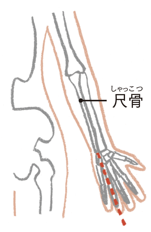 そこで腕の骨(尺骨)からのびる薬指のセンサーにアプローチ。