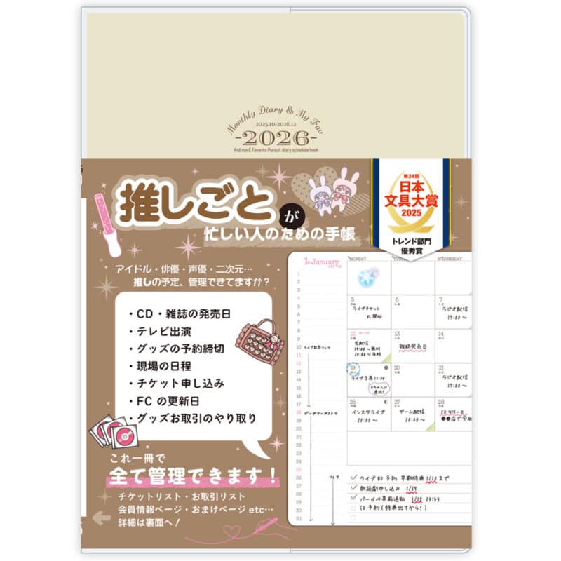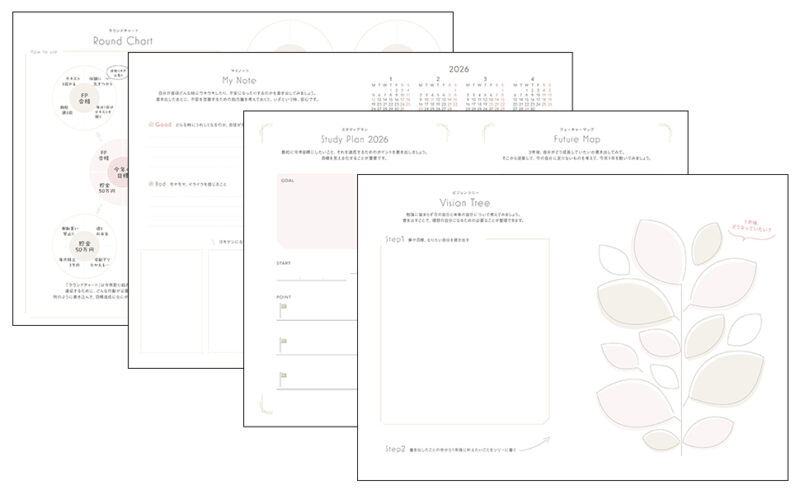 2026年版では「1年の勉強目標が書き込めるページ」や「3年後の自分とそこにたどり着くために必要なことを書き出すページ」「叶えたいことを100個書き出せるページ」「自分が習慣にしたいことをリスト化して、達成できたかどうか記録するページ」など、さまざまな機能であなたの学習スケジュールや夢の実現をサポート。この手帳なら、仕事と勉強を両立して頑張るあなたの素敵な相棒になってくれそうです。