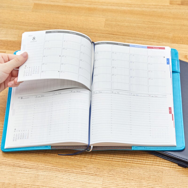 手帳の上下を外側に折り込めば狭いデスクでも場所を取らず、パソコンやタブレットとの照らし合わせもラクラク。在宅勤務やカフェでの勉強など、限られたスペースでの記入に便利です。実はこの手帳、カスタマイズ性、携帯性、使い勝手の良さから、2020年発売以来、累計20,000冊を突破した人気商品。2026年版ではカバーカラーに「ゴールド」「シルバー」「ソフトブラック」の3色が追加され、幅広い世代に注目されています。
