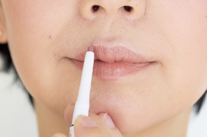 「大人は唇が薄くなり、さらに輪郭もあいまいに。山と谷を強調するだけで鼻の下が短く見えます」
