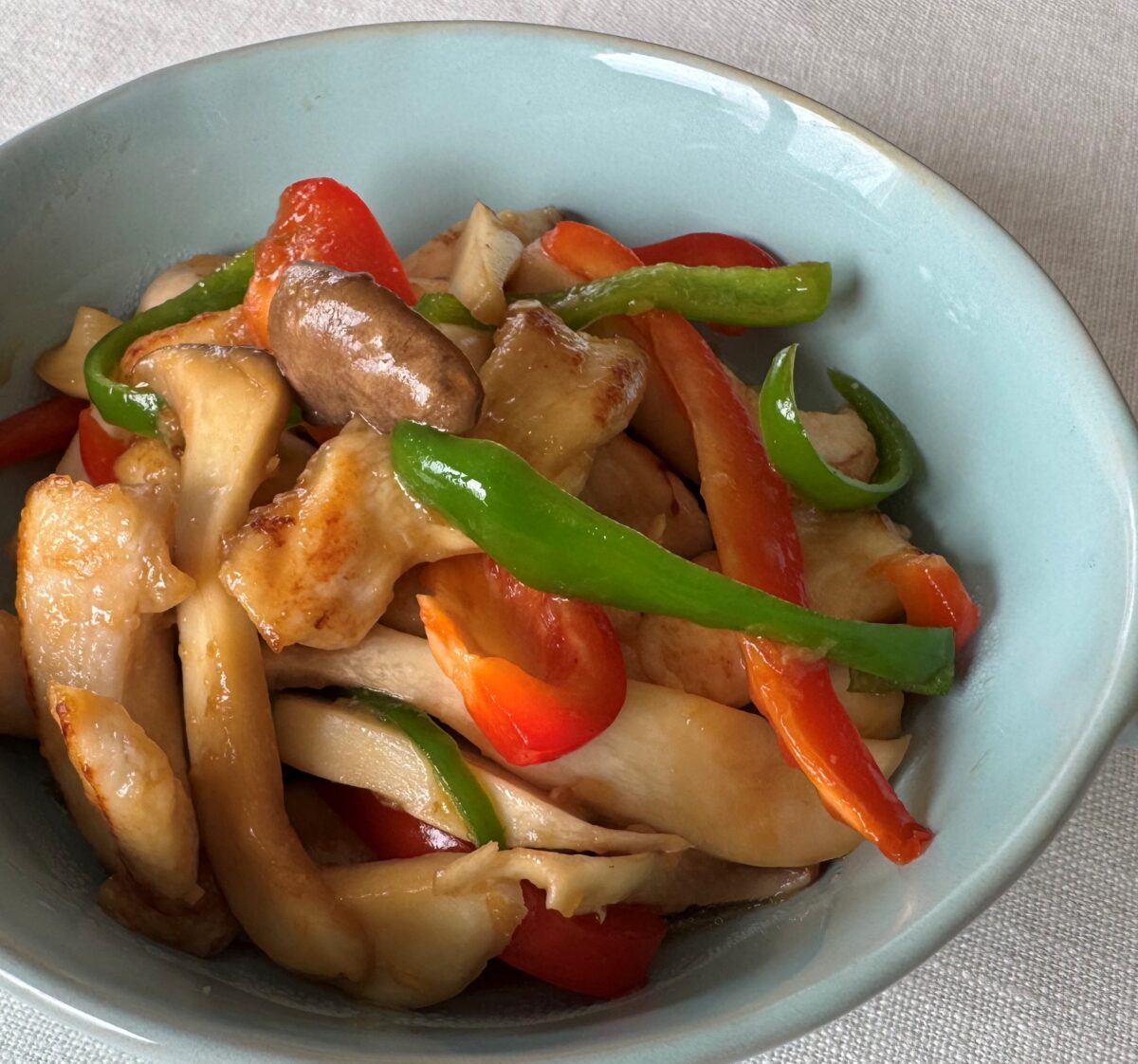 ピーマンやパプリカはビタミンCが豊富で、強い抗酸化作用があります。ビタミンCはコラーゲン生成に欠かせないため、たんぱく質と合わせて摂ることで肌や骨の健康に役立つほか、筋肉を支える腱や筋膜を強くする働きがあり、筋力アップの土台づくりにもつながります。エリンギは食物繊維が多く、ビタミンB群やビタミンDも含むため、腸内環境の改善やダイエットにも心強い味方です。