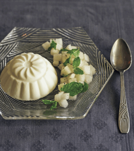 なしにすだちを搾ることで爽やかな風味を足す。ミントとこしょうできりっとしたソースに。