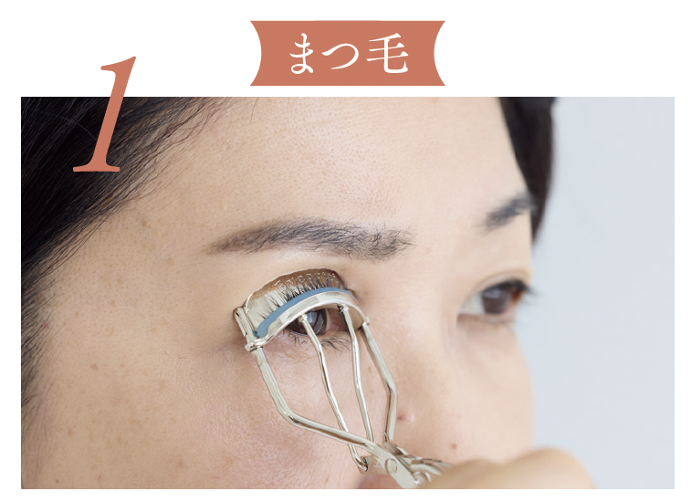 1. ビューラーでまつ毛をCカールに