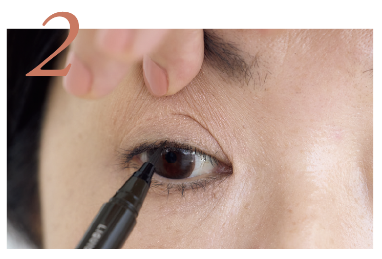 2. アイライナーでまつ毛の生え際を埋める