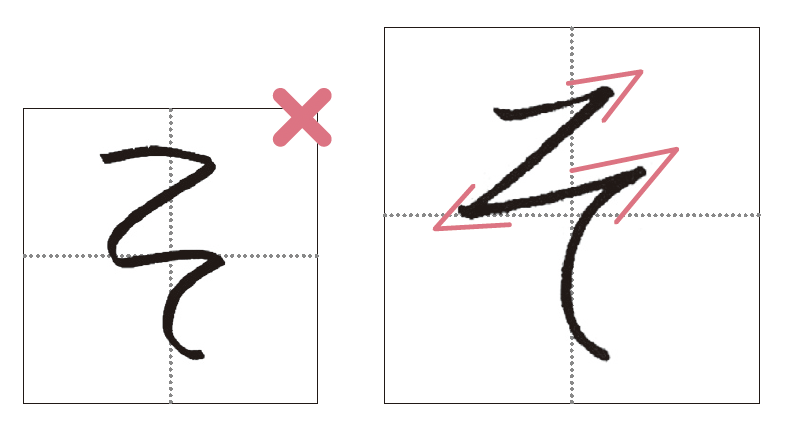 「そ」「れ」などのようにジグザグの折れ線は、しっかりと角度をつけるのがコツ。