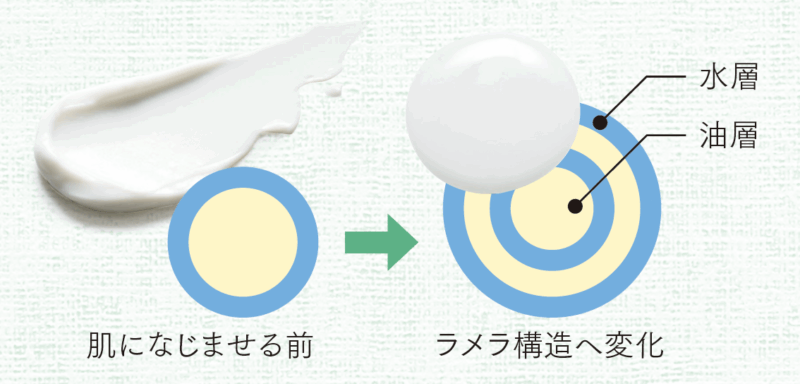 コクのあるクリームがラメラ構造に変化し、肌の汚れをやさしく落としながら、キメを整え、もっちり柔らかな肌に調えます。