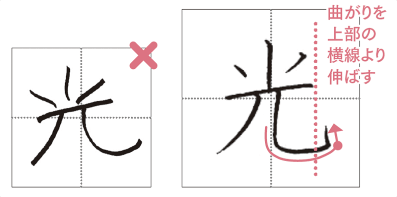 「光」の最後の一画が「曲がり」です。
