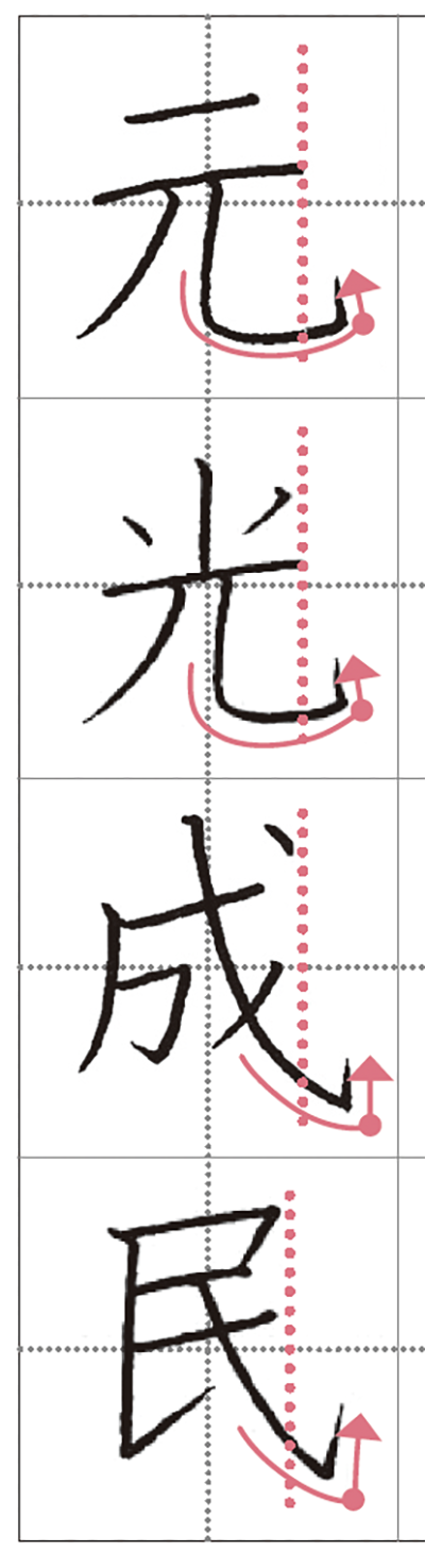 「元」「光」などは、最後の〝曲がり〟が堂々とした美しさの決め手。