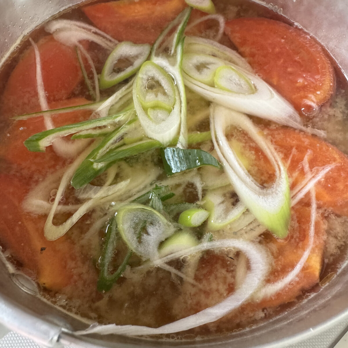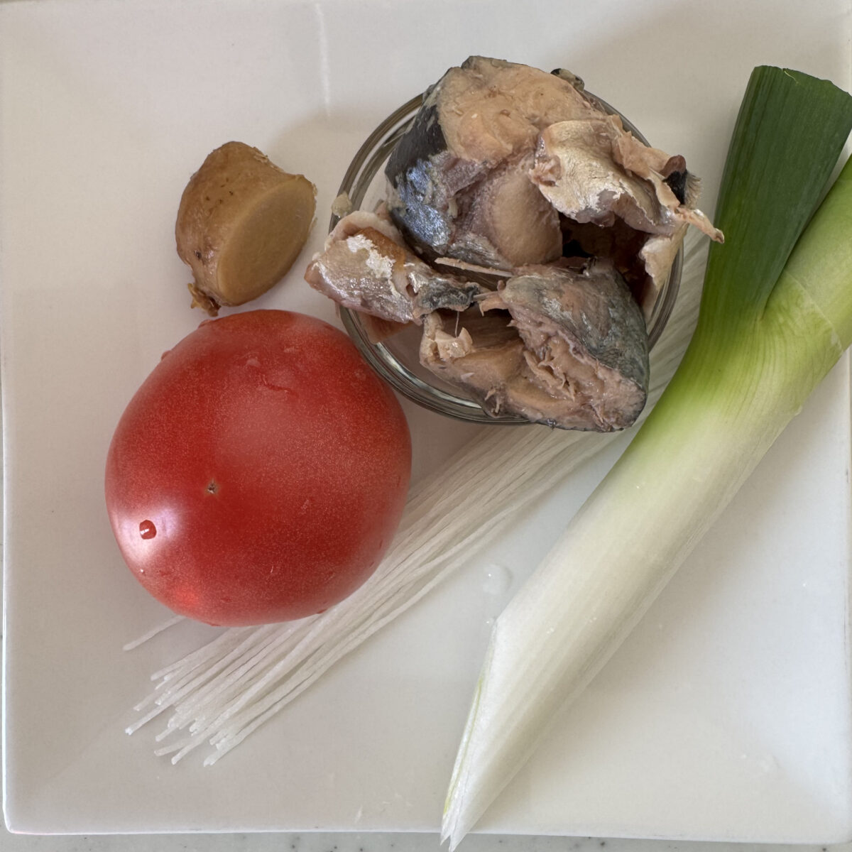 「ねぎたっぷり さば缶・トマト・春雨のみそ汁」