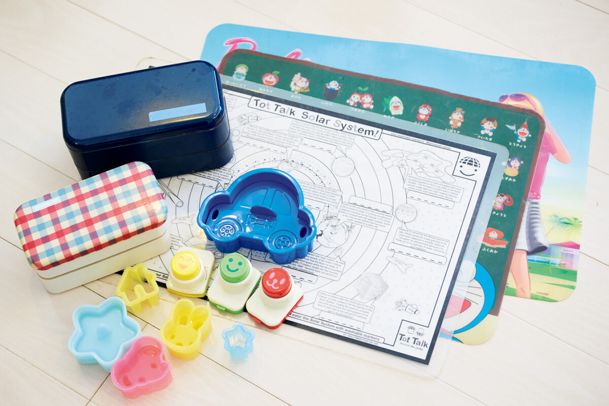 キャラクターがプリントされたマグカップや弁当箱などは使わないと判断。