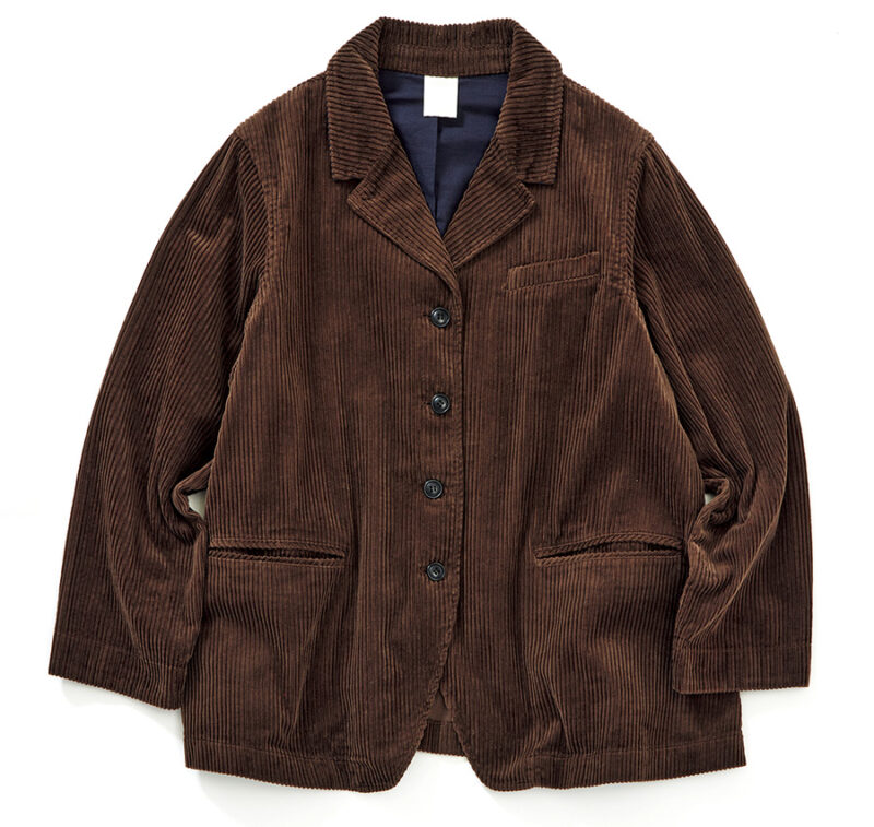 コーデュロイジャケットにはざっくりニットを組み合わせて