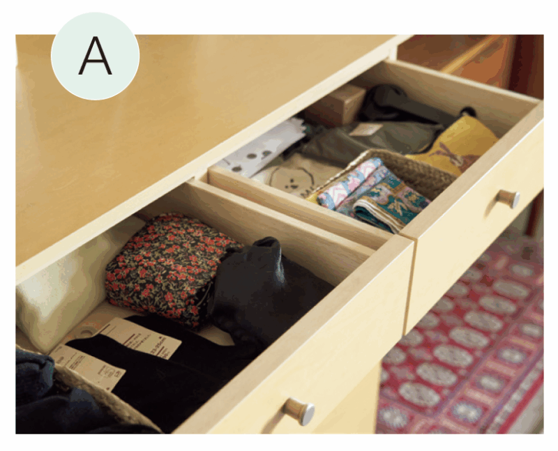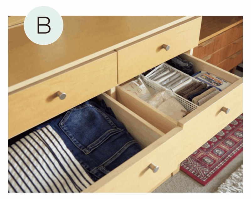 ハンカチなどはイケアのプラダンケースを並べて仕切りに。「立ててしまうと中が乱れず、取り出しやすいんです」
