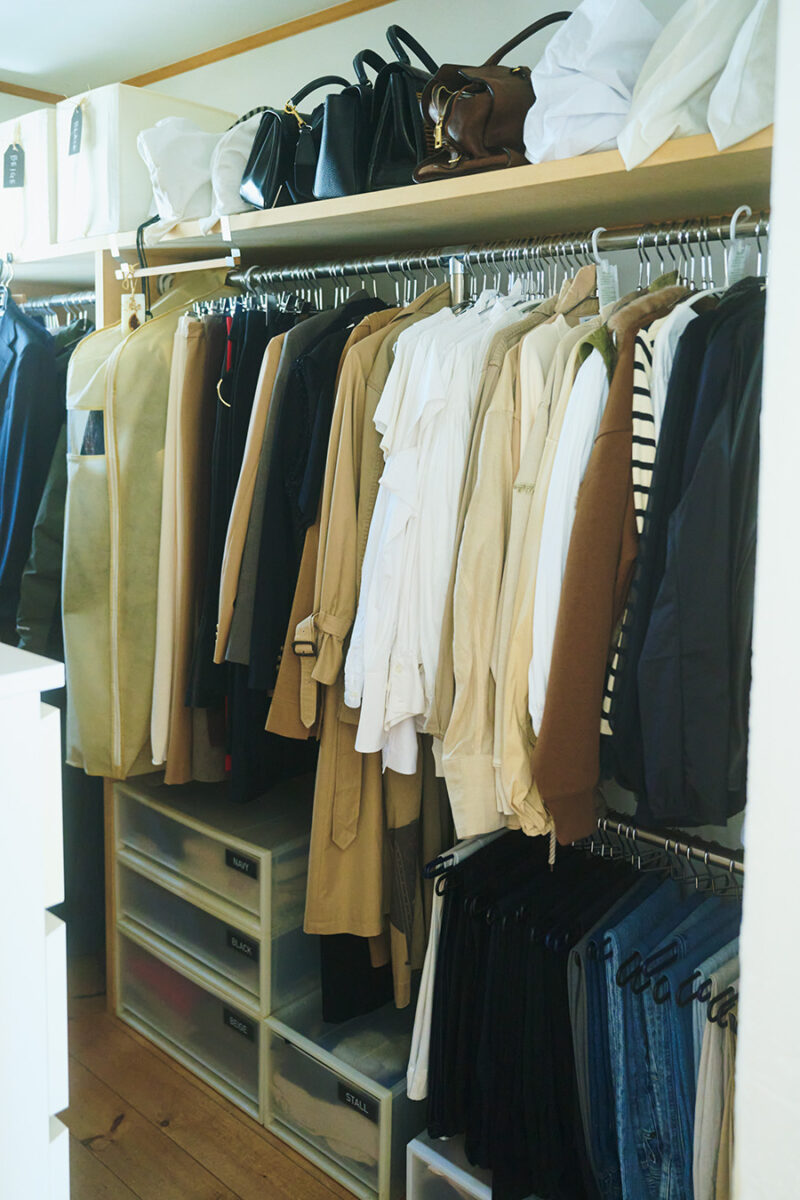 「色別にすると、コーディネートがしやすく、出すのもの仕舞うのもラク!」