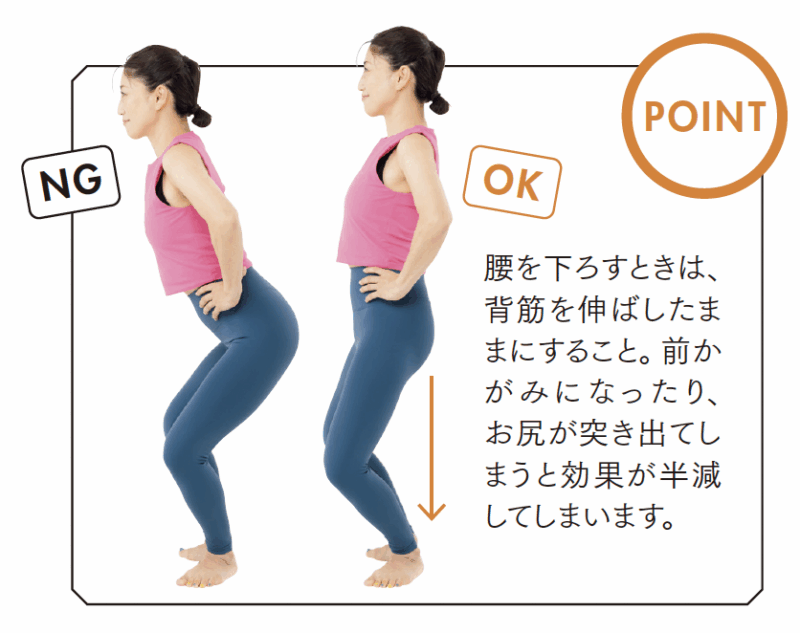 前かがみになったり、お尻が突き出てしまうと効果が半減してしまいます。