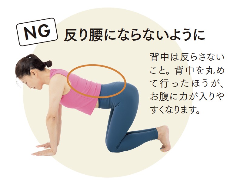 背中を丸めて行ったほうが、お腹に力が入りやすくなります。