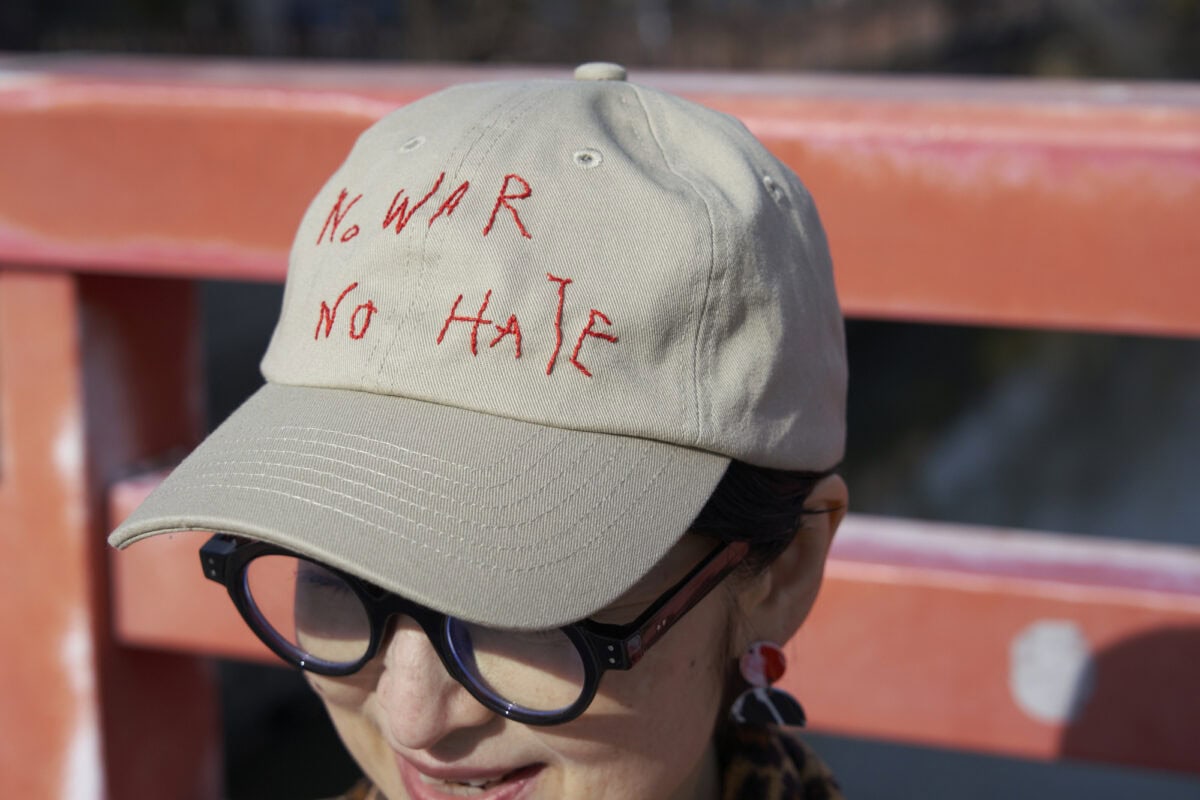 メッセージを刺しゅうしたキャップで抜け感を