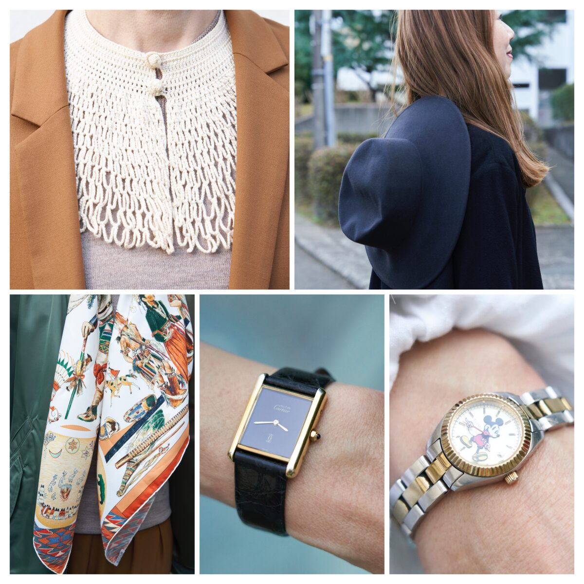 アンティークつけ衿、ウールハット、エルメススカーフ、カルティエのタンク etc.