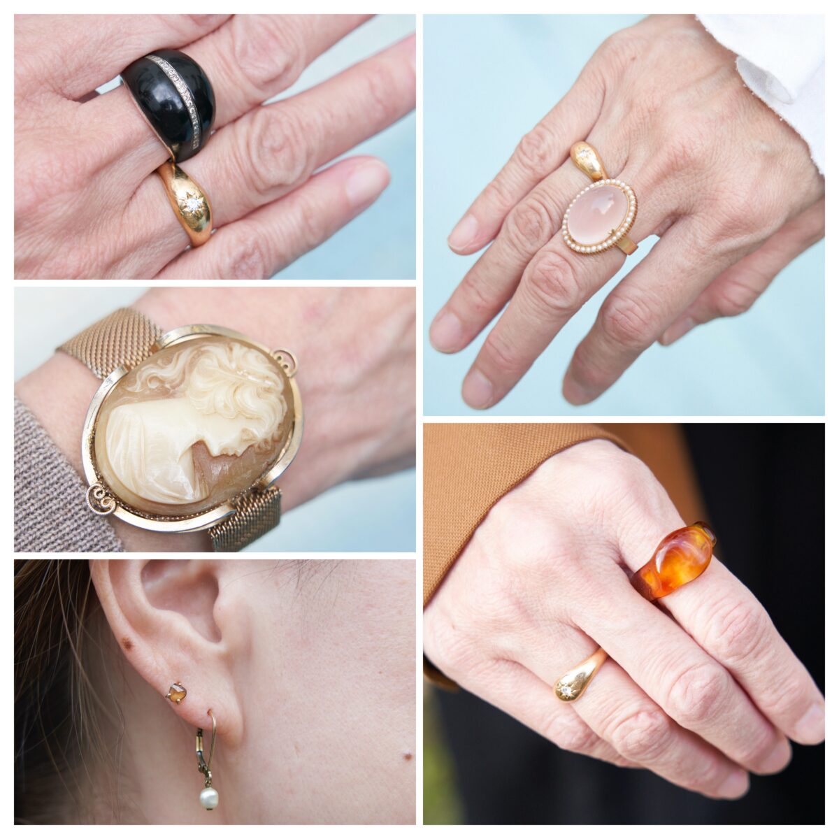 アンティークのカメオブレスレット、韓国人作家のガラスリング、祖母の形見のローズクォーツ etc.