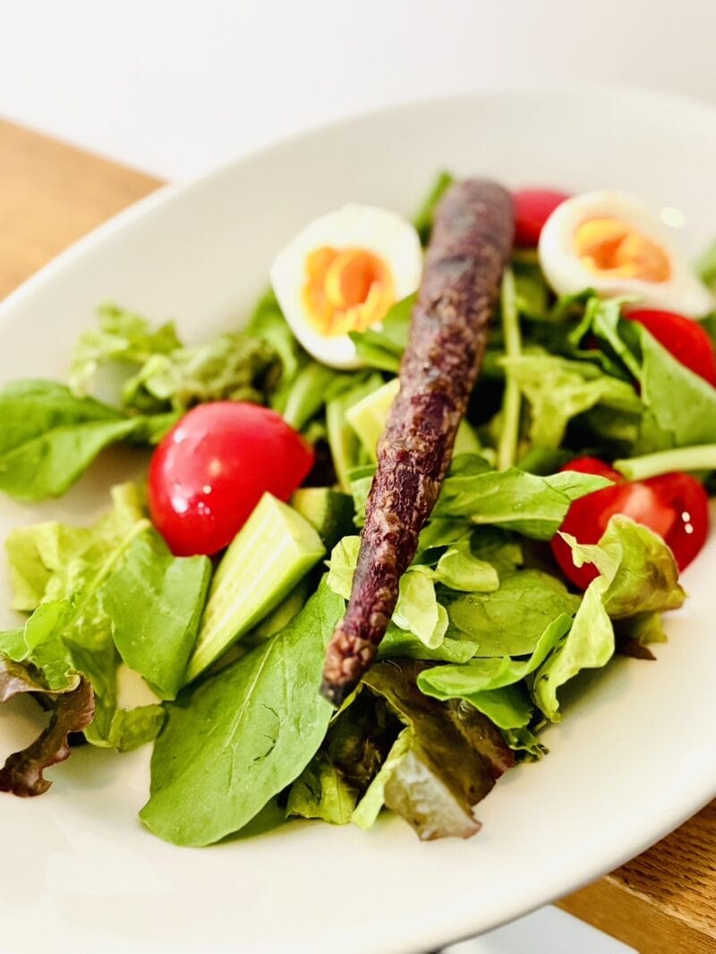 購入したばかりの野菜を使って野菜もりもりの朝ごはん。
