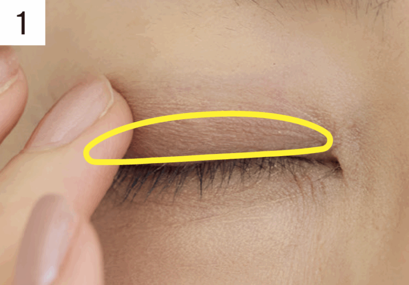 1. ベージュシャドウで目の際を引き締める