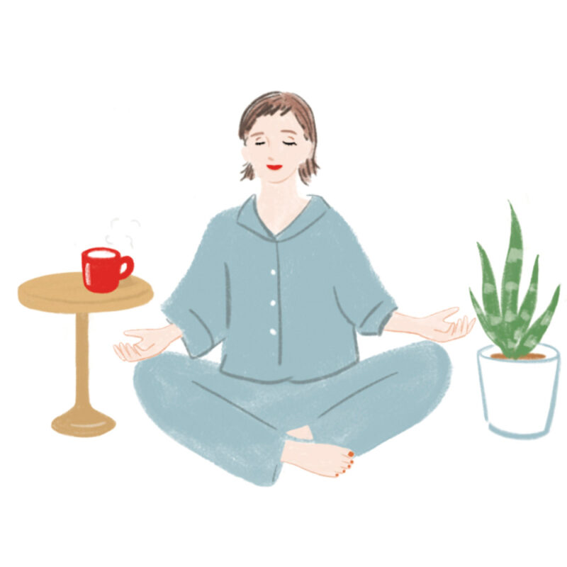 起床したら温かい飲みもので体を目覚めさせてから、ゆっくりとした呼吸と瞑想、ストレッチを行い、自分のなかがクリアになったら、今日1日健やかに過ごせるようにと、自分に伝えます。