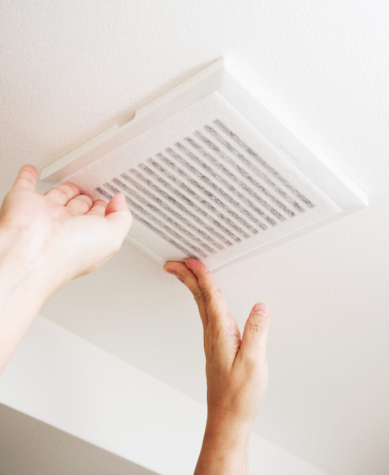シールのように貼り付けるタイプのフィルターを付けると、中にほこりがたまりにくく、そうじもラクに。