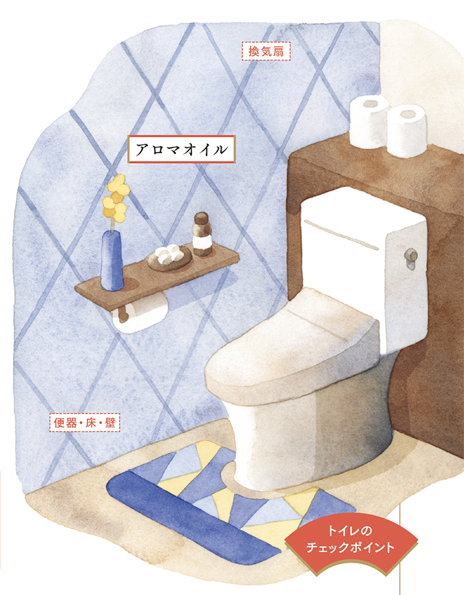 においのもととなる便器や床の汚れは、毎日きれいにしておきます。