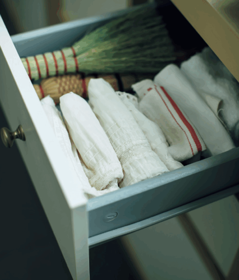 着なくなった衣服やタオルで作ったウエスは取り出しやすい引き出しにスタンバイ。