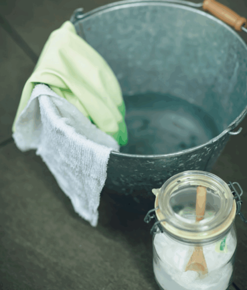 重曹を溶かした湯に漬けて固く絞った雑巾を使用。