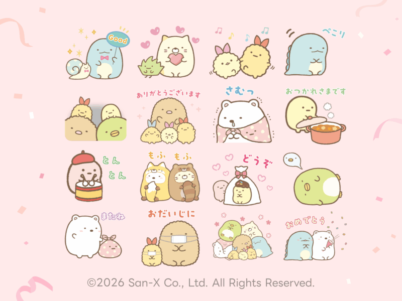 現在、2026 年2 ⽉18 ⽇(水)までの期間限定で「すみっコぐらし × 選べるニュース」LINEスタンプキャンペーンを実施しています。この機会にぜひ友だち追加を!