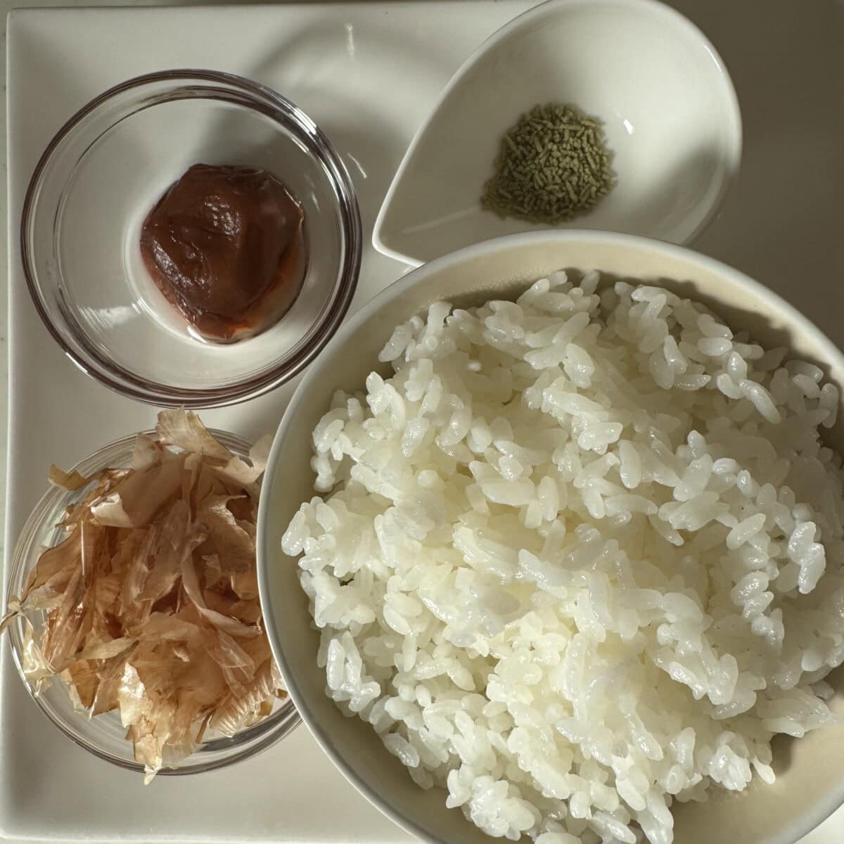 かつお節は、たんぱく質が豊富。「勝男武士(かつおぶし)」「勝つ」に通じる名前を持ち、昔から縁起の良い食材といわれています。梅ごはんを、鍋の締めに入れてもおいしい。