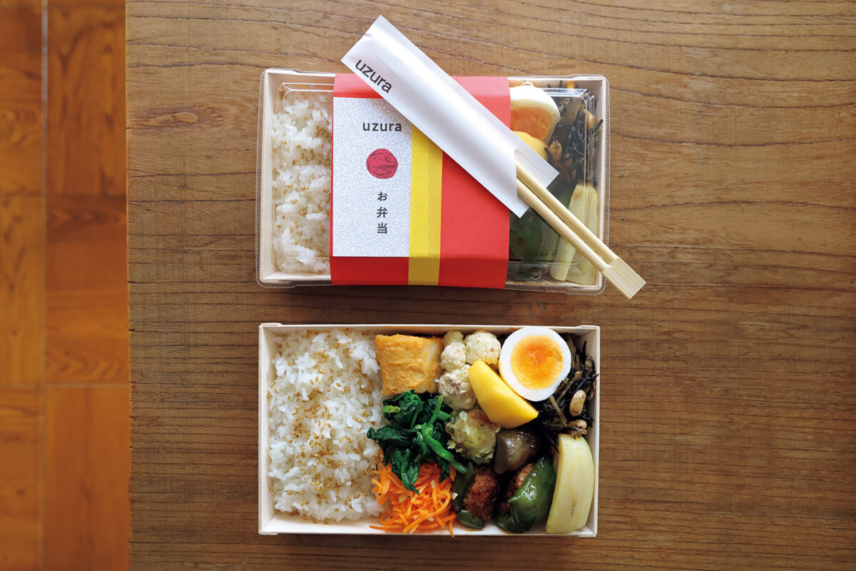 栄養バランス満点な日替わり弁当は1500円。店舗(東北沢駅近く)でのお弁当販売は火・木の週2回。インスタグラム@ uzura01で告知。お弁当の予約はDMで受付中。
