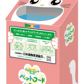 地域猫(保護猫)活動の支援強化を行っているファミリーマート。昨年2月22日のねこの日に合わせて「ペットフードドライブ」を設置し、約3000食分のごはんを回収したことでも反響を呼びました。そこで今年は設置店舗数を2倍に拡大! ご家庭に眠っている未開封のペットフードをファミリーマート店舗に持ち込むと保護猫などの食事支援につながります。