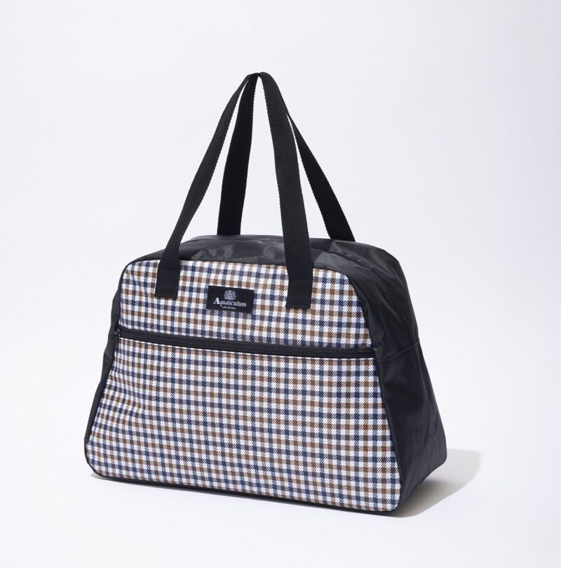 『GLOW』3月号付録は、創設175周年を迎える歴史あるモダン・ブリティッシュブランド【アクアスキュータム】の大容量ボストンバッグ。アクアスキュータムクレストロゴの織ネーム付き!クラブチェックをあしらった洗練されたデザインです。