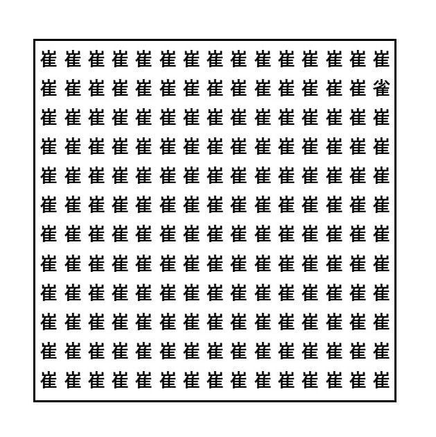 同じ漢字の中に、一つだけ違う漢字が混ざっています。それはどれでしょう?