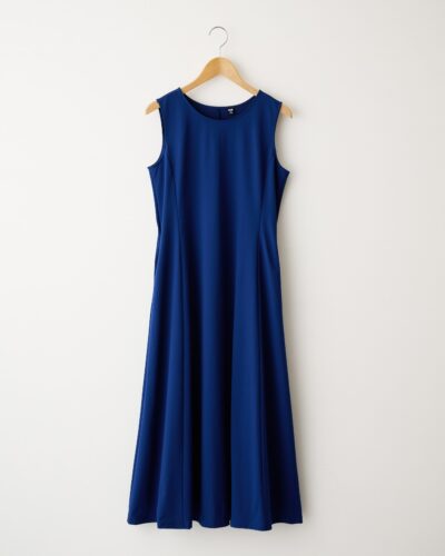 「ストレッチ性の高いカットソー素材ながらシルエットが美しいので、カジュアルな印象になりすぎず、オン&オフ、どんなシーンにも着まわせるワンピースだと思います。体形をカモフラージュしてくれるポイントもたくさん。まずは、上半身をコンパクトに見せ、脚長効果につながるウエスト位置。肩口から縦に伸びるラインが入っているので、着ぶくれして見えない効果も期待できます。スカートもロング丈なので、大人にも安心。衿のあき具合もほどよく、デコルテが美しく見えるボートネックです。一枚で着るのはもちろん、重ね着スタイルも楽しめる一着です」