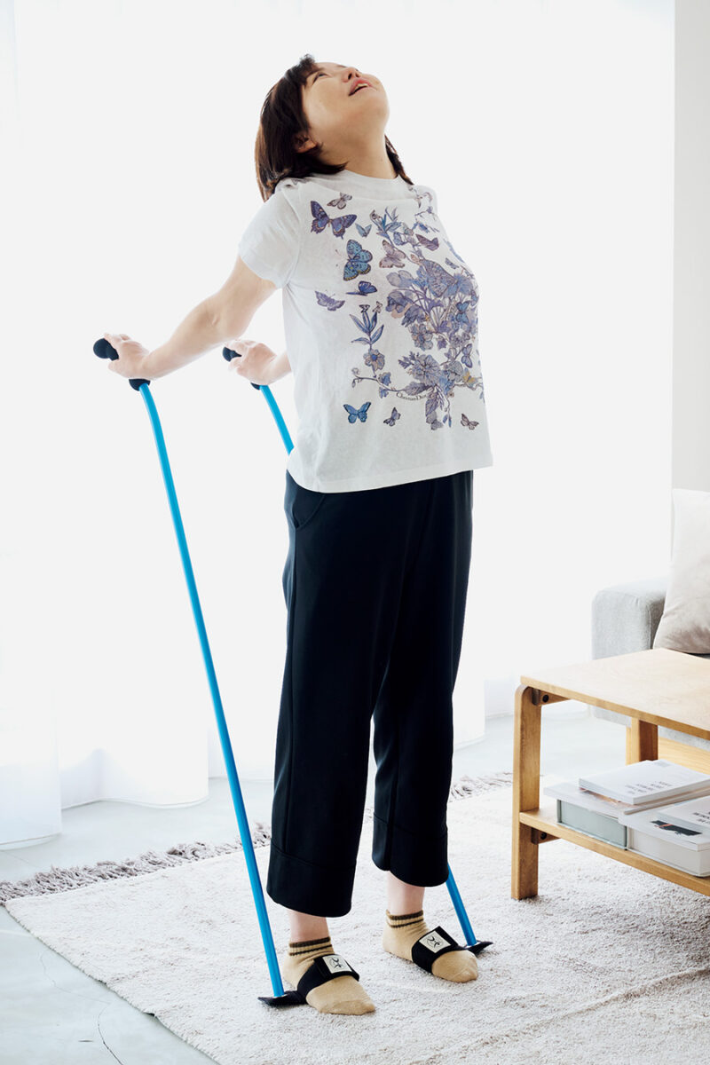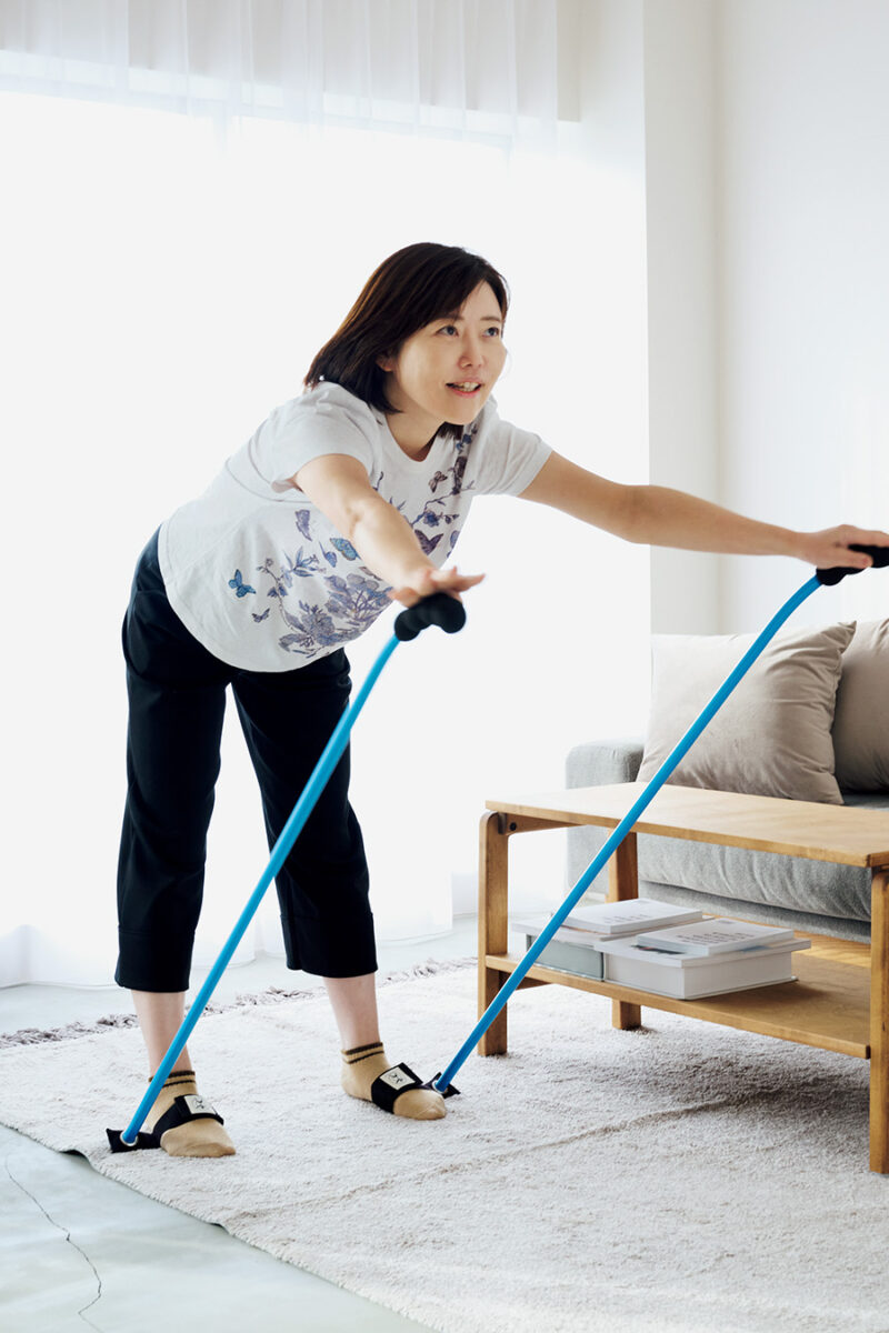 足元を固定してエクササイズを行う健康器具「ソーラーポール」を愛用。