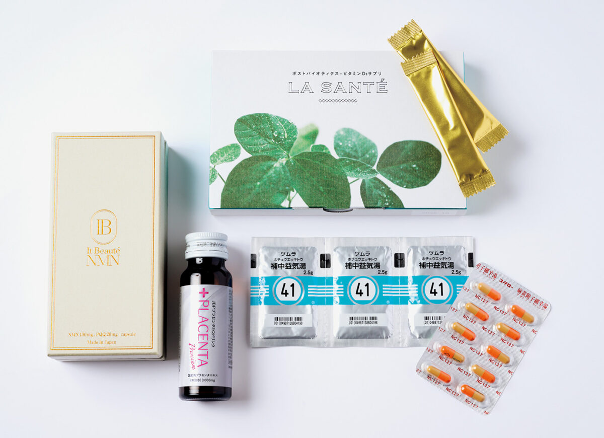 サプリは、日比野先生が監修した「I t Bea ut éNMN」のほか、「JBPプラセンタEQドリンク」「ラサンテ パウダー」を愛用。