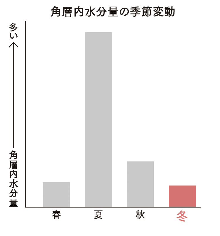 この大切な機能を担っているのが、皮膚の一番外側にある角層です。ただこの角層、湿度や寒暖差の影響を受けやすく、肌の保湿状態に関わるそう。