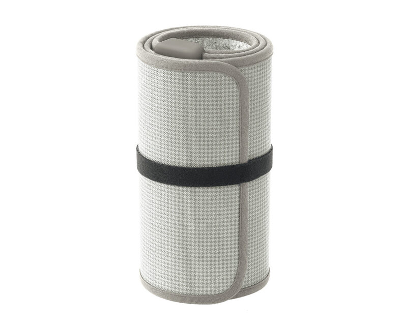 約15分の蓄熱で室内なら3時間保温。「足もとが冷えるときも、これでぐっすりです」。手を入れるポケット付き。