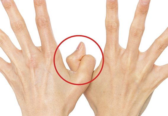 親指以外は大きく広げ、親指同士は絡める。